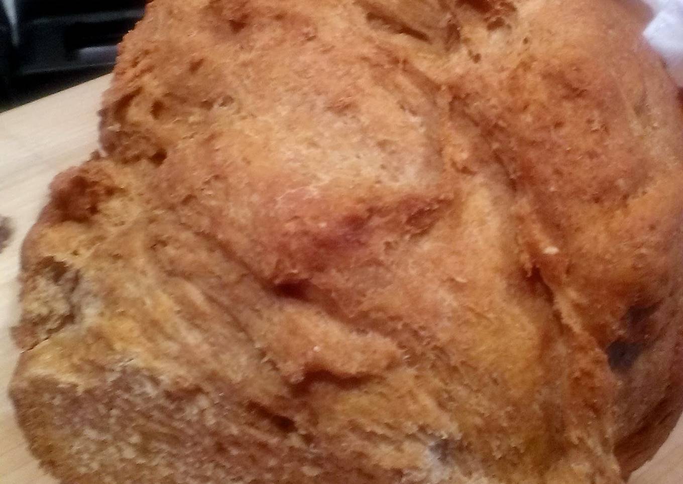 Experimenting with bread machine. I took the basic egg bread recipe from the machine recipe book and modified it to use different flours. because the rye flour makes denser bread, I increased yeast to 2 teaspoons.