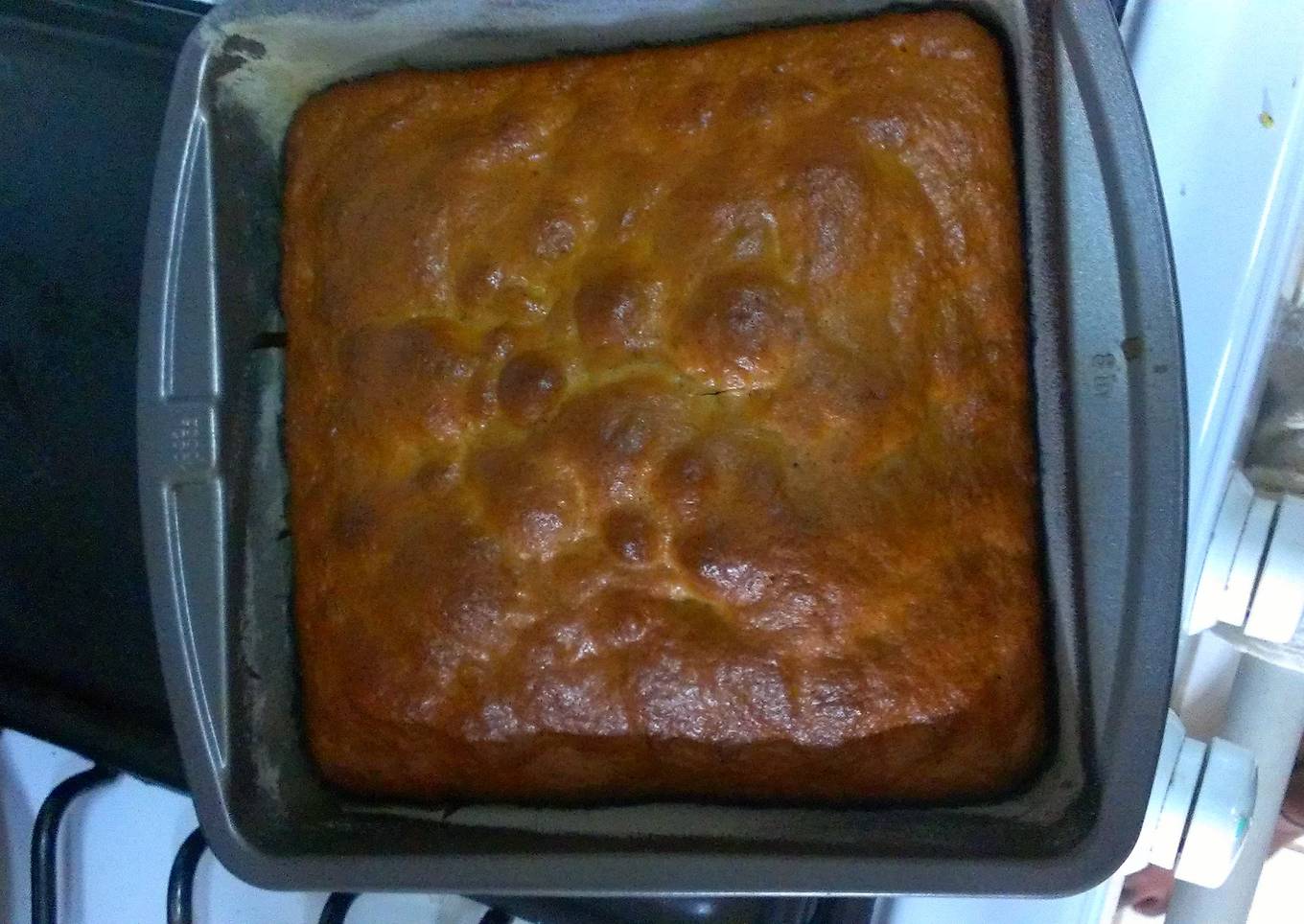 - grease pan and cover with a light layer of flour.