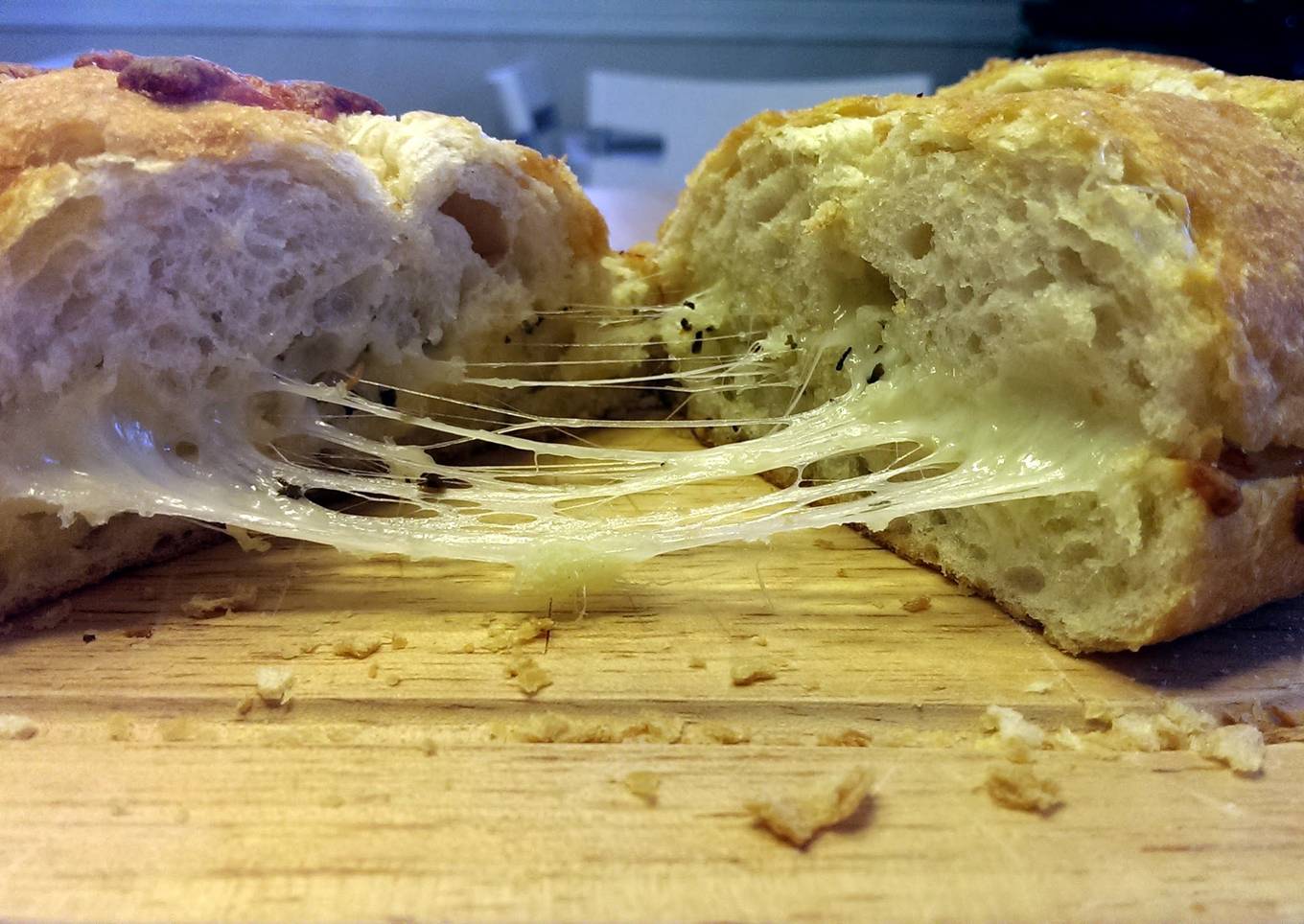 - Evenly spread the cheese across the bottom half, filling in air pockets in the bread for that extra surprise.;-)