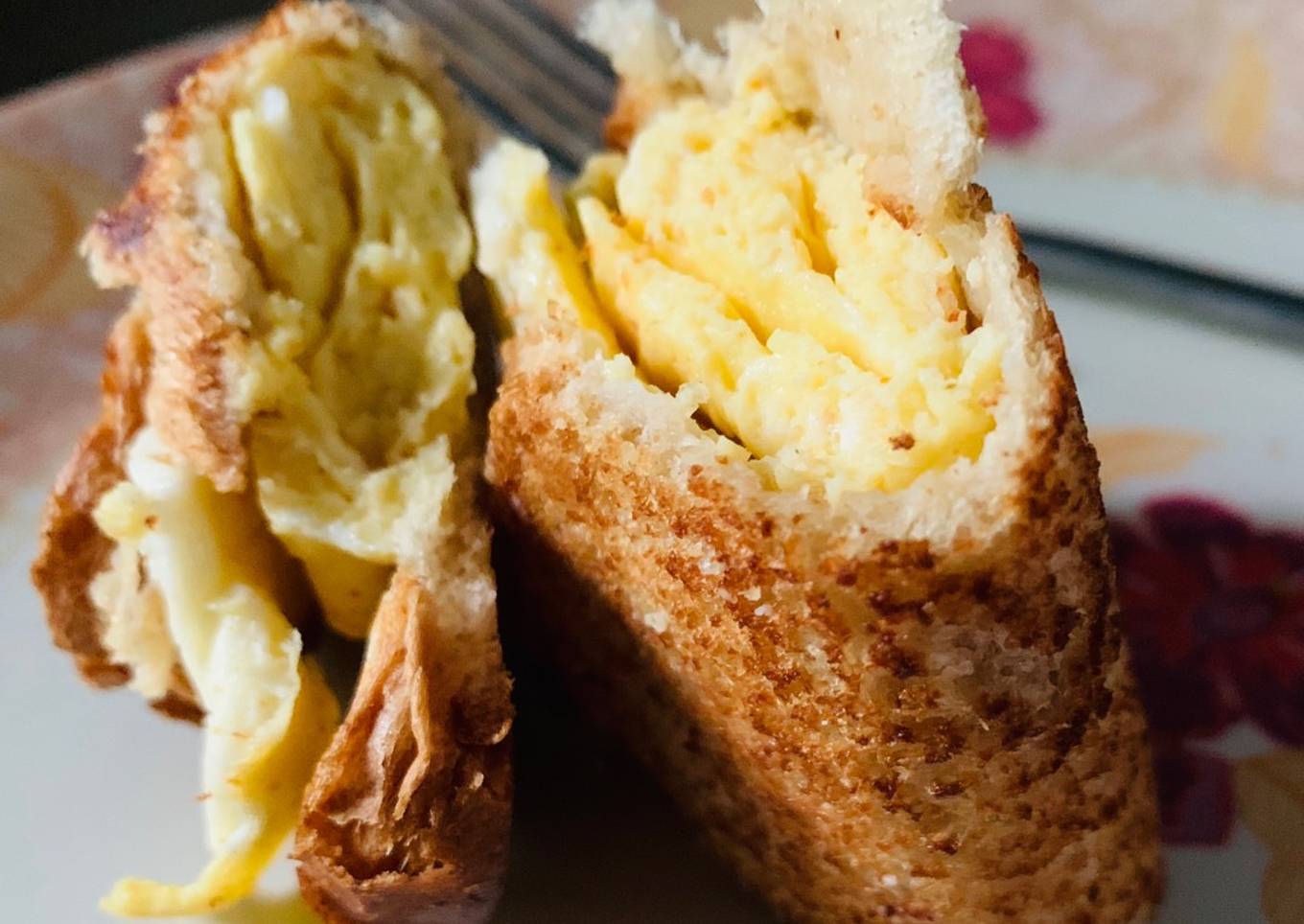 - Take a slice of bread. Put the egg roll inside it, add a cheese slice and cover it with another slice of bread.