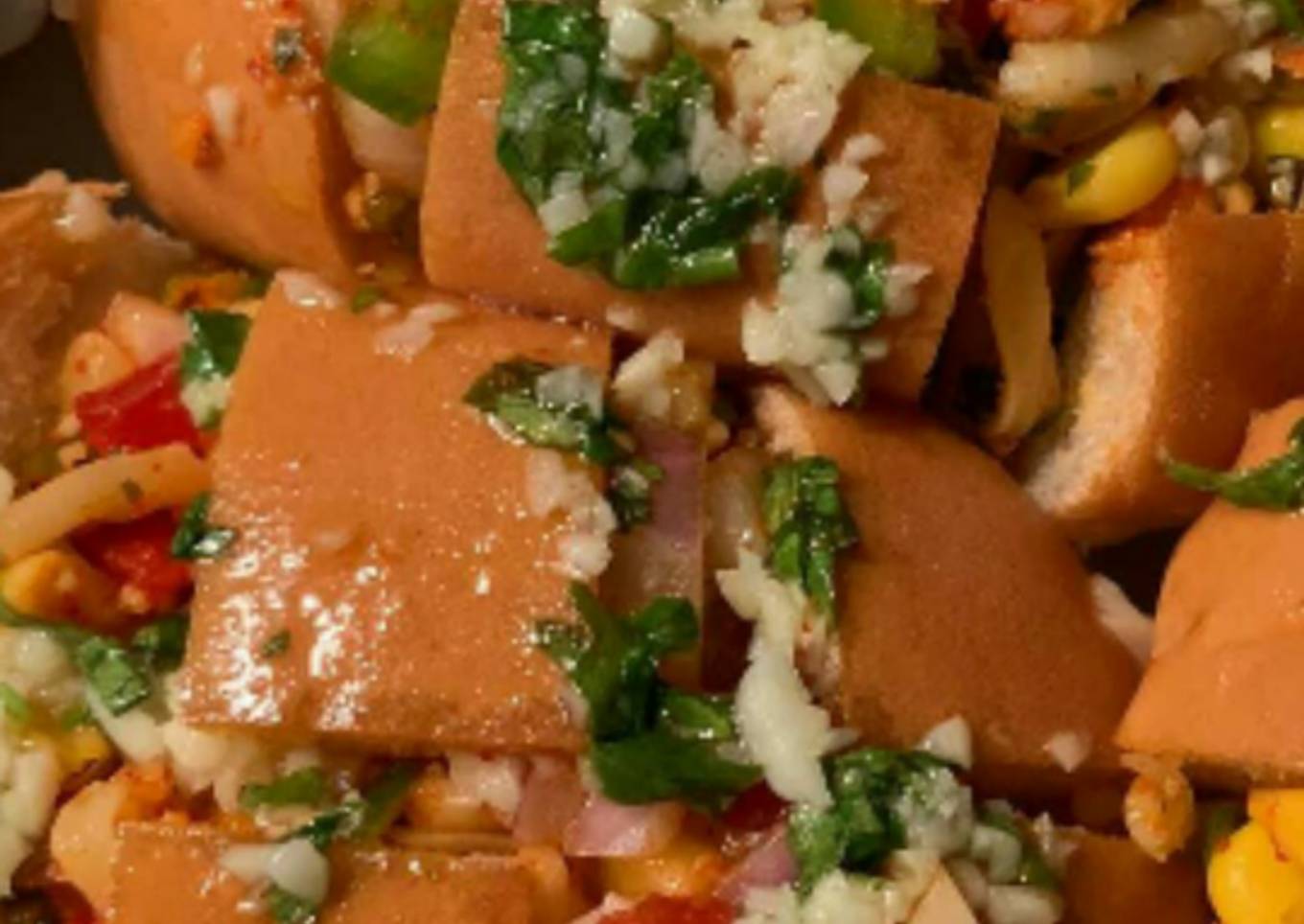- Cut pav mid way into small squares and stuff this veggies mixture in the space in the between.