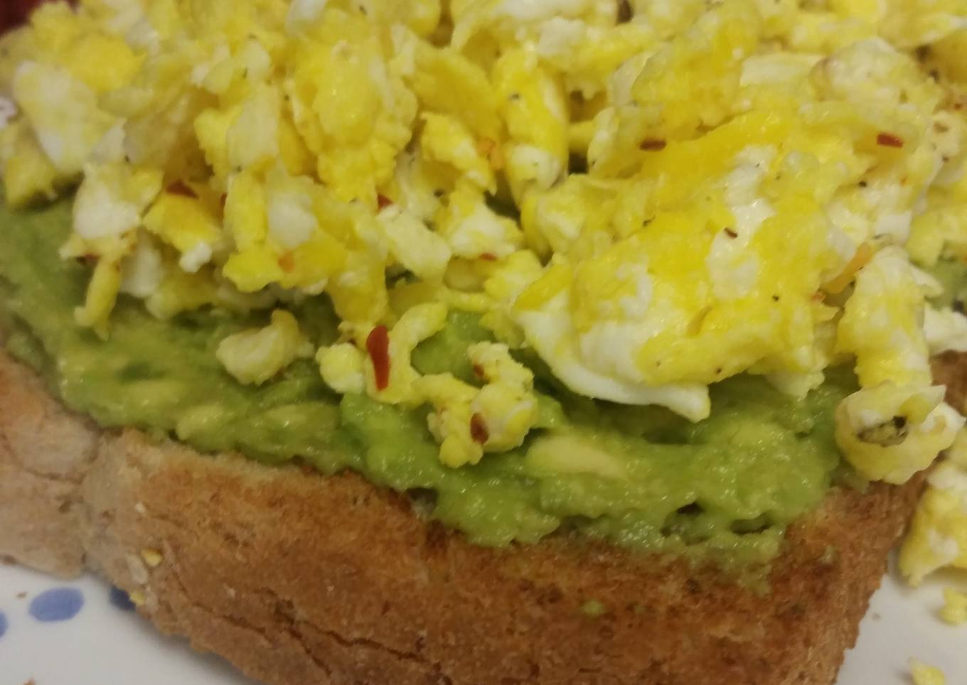 - Cover your piece of toast with the avocado you mashed and top with your egg.