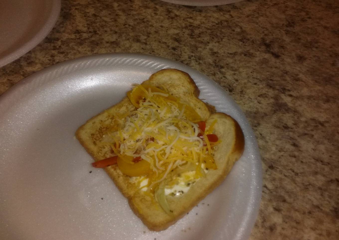 - Once you made the holes get the pan ready to sauteed the peppers and onions. I season with salt and pepper. Set aside once cooked.