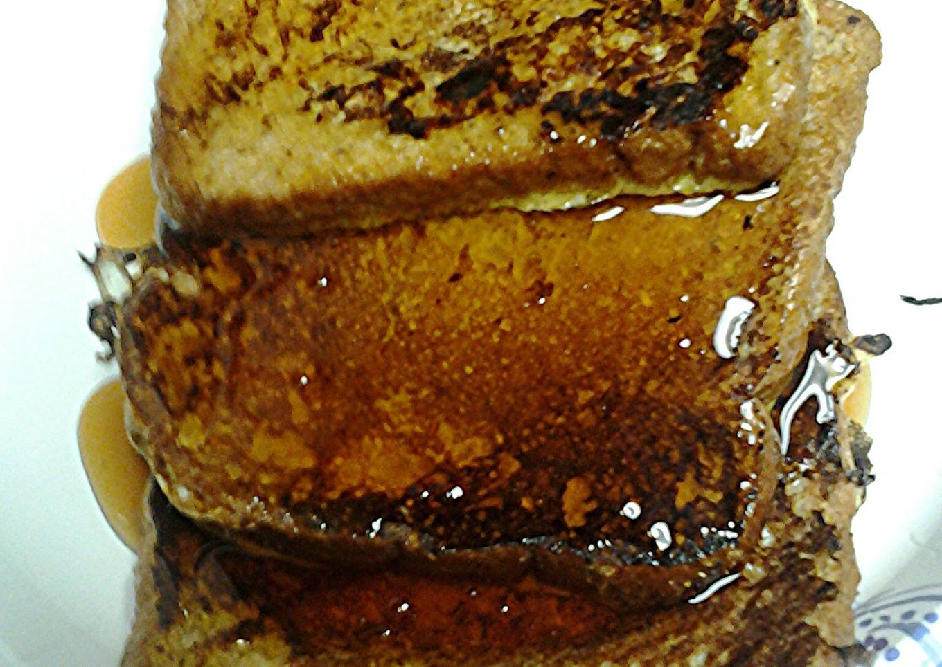 - Take your portion of toast add to plate top with syrup, jam, fruit, chocolate syrup, honey, or whatever you like. Serve, hope you enjoy
