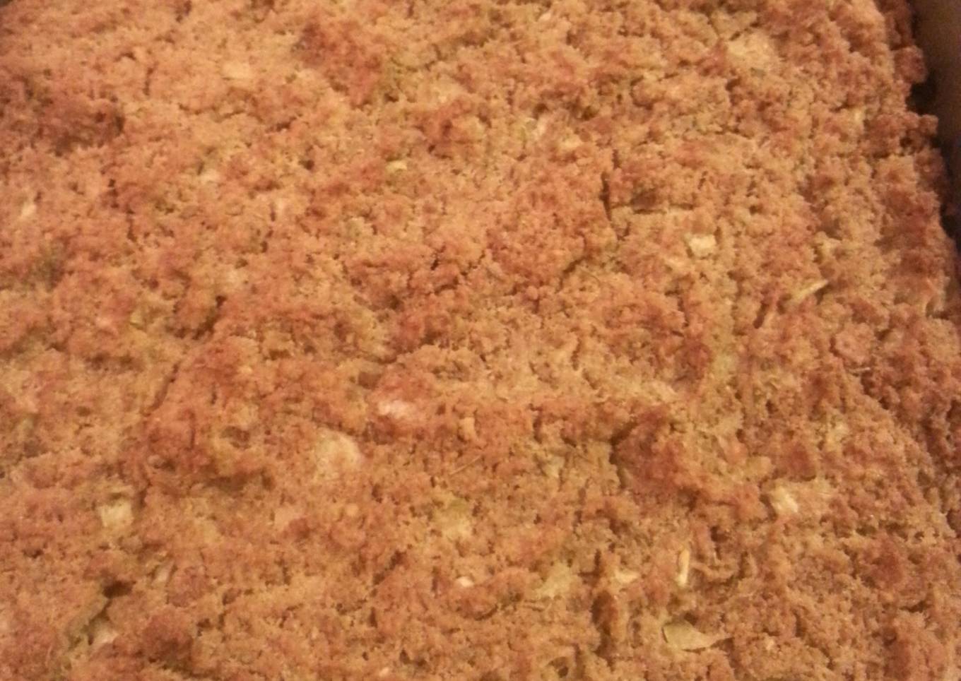 - Crumble cornbread and Bread crumbs into deep 10x13 pan